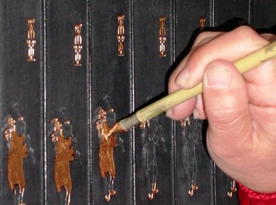 "Packfung" est une prononciation dialectale de "baitong", cuivre blanc, qui est du maillechort. On fabrique des encriers portables dans cette matière, qui contiennent un matelas de bourrette de soie imprégné d'encre préparée à l'avance. Pour éviter que celle-ci ne se putréfie, le fond de la boîte est toujours en cuivre. De nombreux modèles ont existé de ces encriers au XIXe siècle, très décorés en général, qui font l'objet de collections réputées.